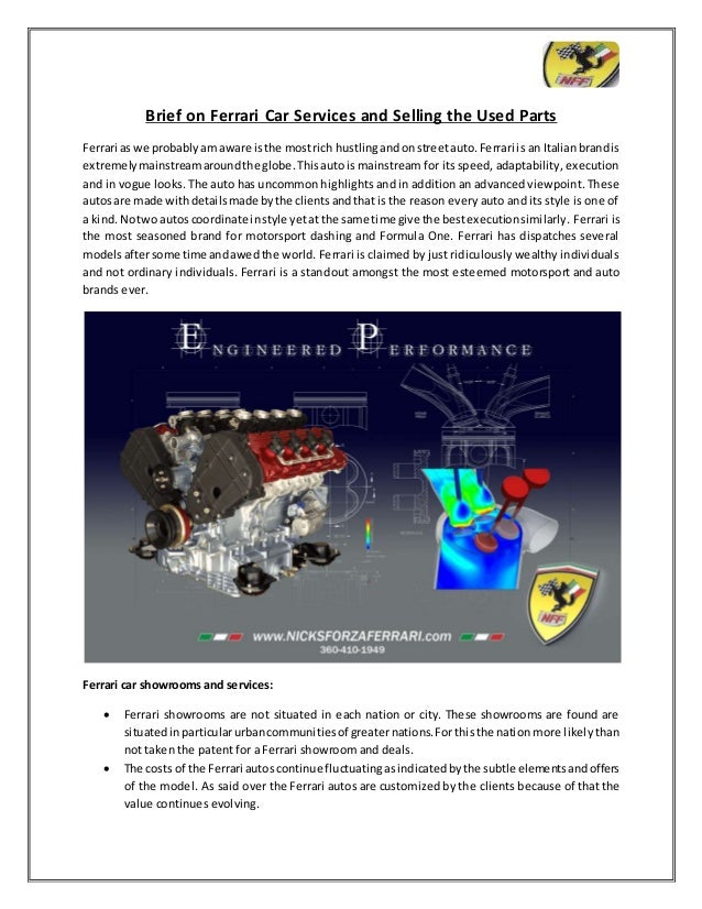 Routine Maintenance On A Ferrari Can Cost More Than Some New Cars from www.motorbiscuit.com Affordable ferrari parts in usa, uk. Nicks forza ferrari has supplying the world with high performance ferrari parts, modifications & accessories since 1996call or text us at 360 410 1949. This year marks the passing of 38 years of trading for superformance. At that time, his goal was to sponsor amateur drivers, as well as to manufacture race cars and performance parts. Algar ferrari is the is the premier online ferrari parts source in north america with over 10,000. Search from over 10 million auto parts. The next level in ferrari 308/ 328 / mondial performance engines by the team at nicks forza ferrari. Buy new and used ferrari parts.